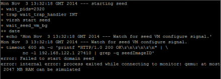 + echo ‘Mon Nov 3 14:37:55 GMT 2014 — Watch for seed VM configure signal.’