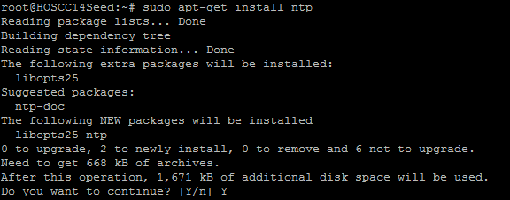- If you don’t have an existing NTP server on your network one can be installed on the hosting server of the seed vm. Log in as root and issue the following command